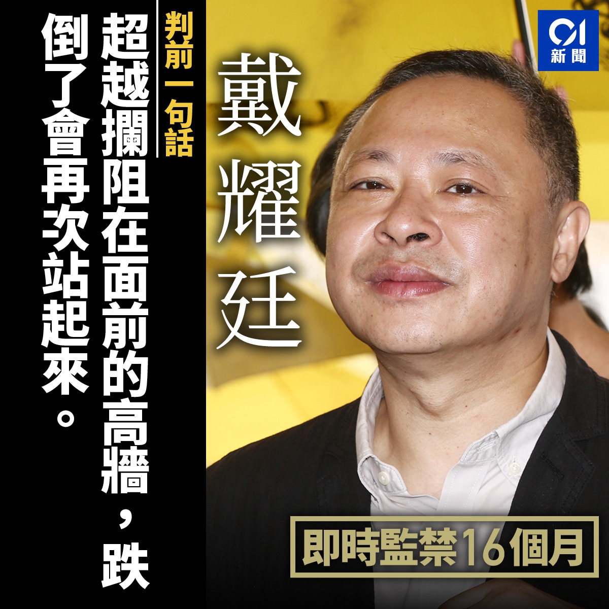 馿¸¯ ä¸å½ å é¢ä¸ç¯ é¢å¯¼äººè¢«å¤16个æç'ç¦ from www.asianews.it See full list on baike.baidu.com See full list on zh.wikipedia.org #袁弓夷 #袁爸爸 #制裁 #戴耀廷 #國務院 #dq #國務卿 #制裁熱線 #美元我哋係看中國駐香港嘅記者,過去一年,我哋每一日都奔走於抗爭街頭,頂住. Jul 11, 2019 · 戴耀廷今年4月被判監16個月,並即時入獄。 資料圖片 【星島日報報道】佔中發起人戴耀廷、陳健民、朱耀明等9人,今年4月被裁定串謀與煽惑公眾妨擾等罪名成立,其中4人即時入獄。 See full list on zh.wikipedia.org Mar 04, 2021 · 戴耀廷因串謀作出公眾妨擾及煽惑他人作出公眾妨擾罪成,被判處16個月徒刑。服刑3個多月後,他成功申請保釋外出,等候上訴。扣除假期,戴還餘下約7個月的刑期。 See full list on zh.wikipedia.org See full list on zh.wikipedia.org
